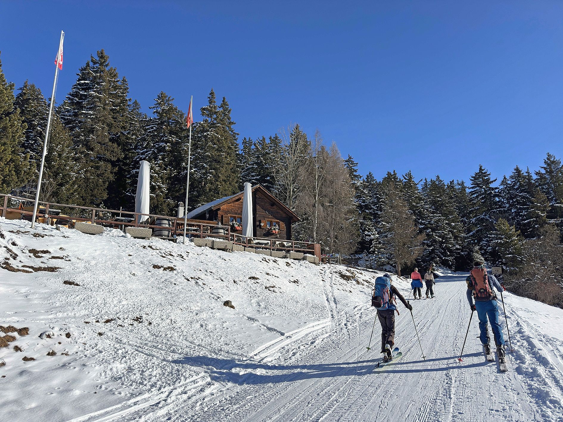 Train jusqu’à Sierre, funiculaire jusqu’à Montana et bus navette jusqu’à Aminona.