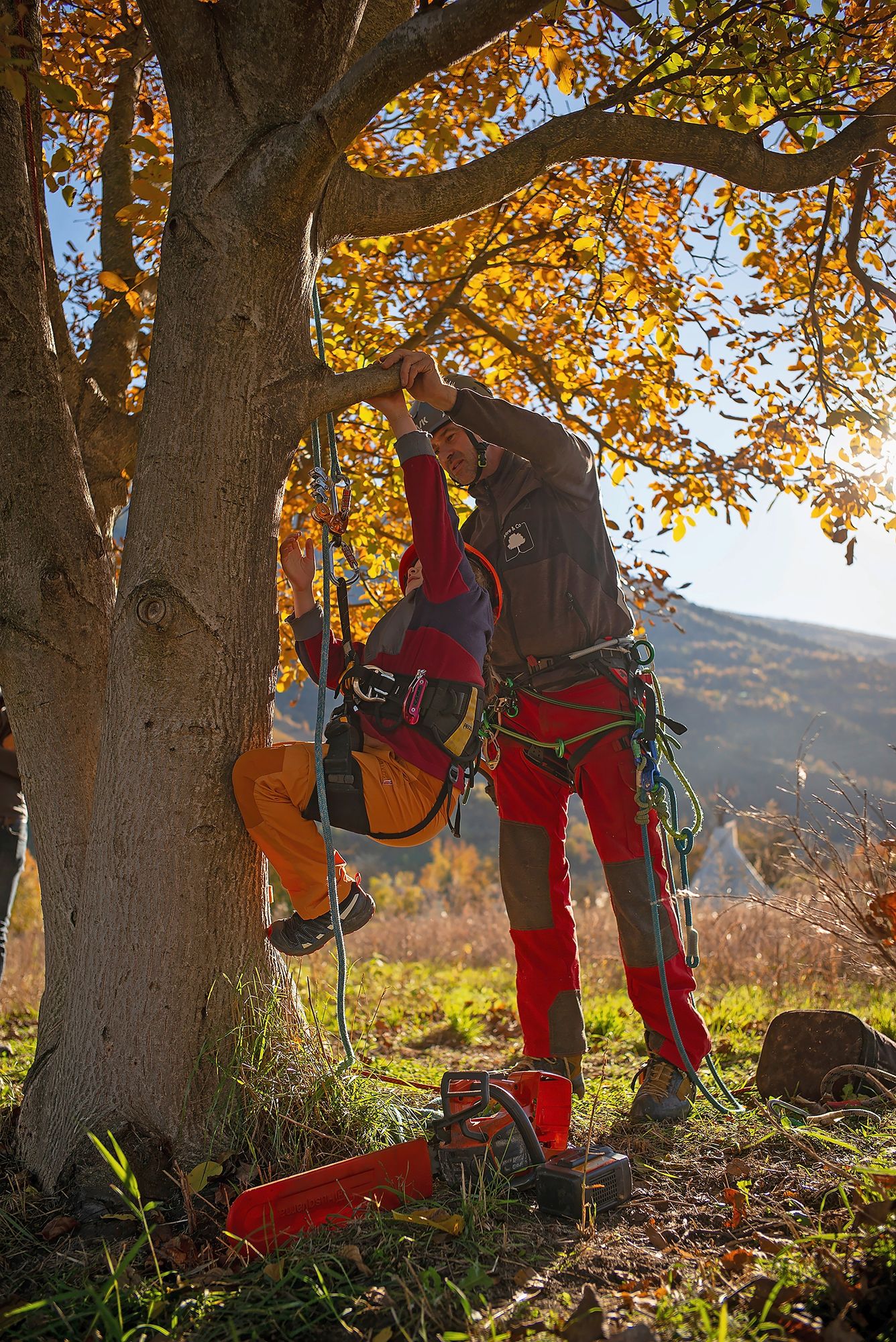 Cycle de croissance d’un arbre, technique de taille et astuces pratiques au programme. Puis vient le moment de passer à la pratique. Après une démonstration d’installation de corde, les jeunes arboristes enfilent l’un après l’autre un casque et un baudrier pour se lancer à l’assaut du tronc. Verdict? L’exercice est moins facile qu’il n’y paraît!