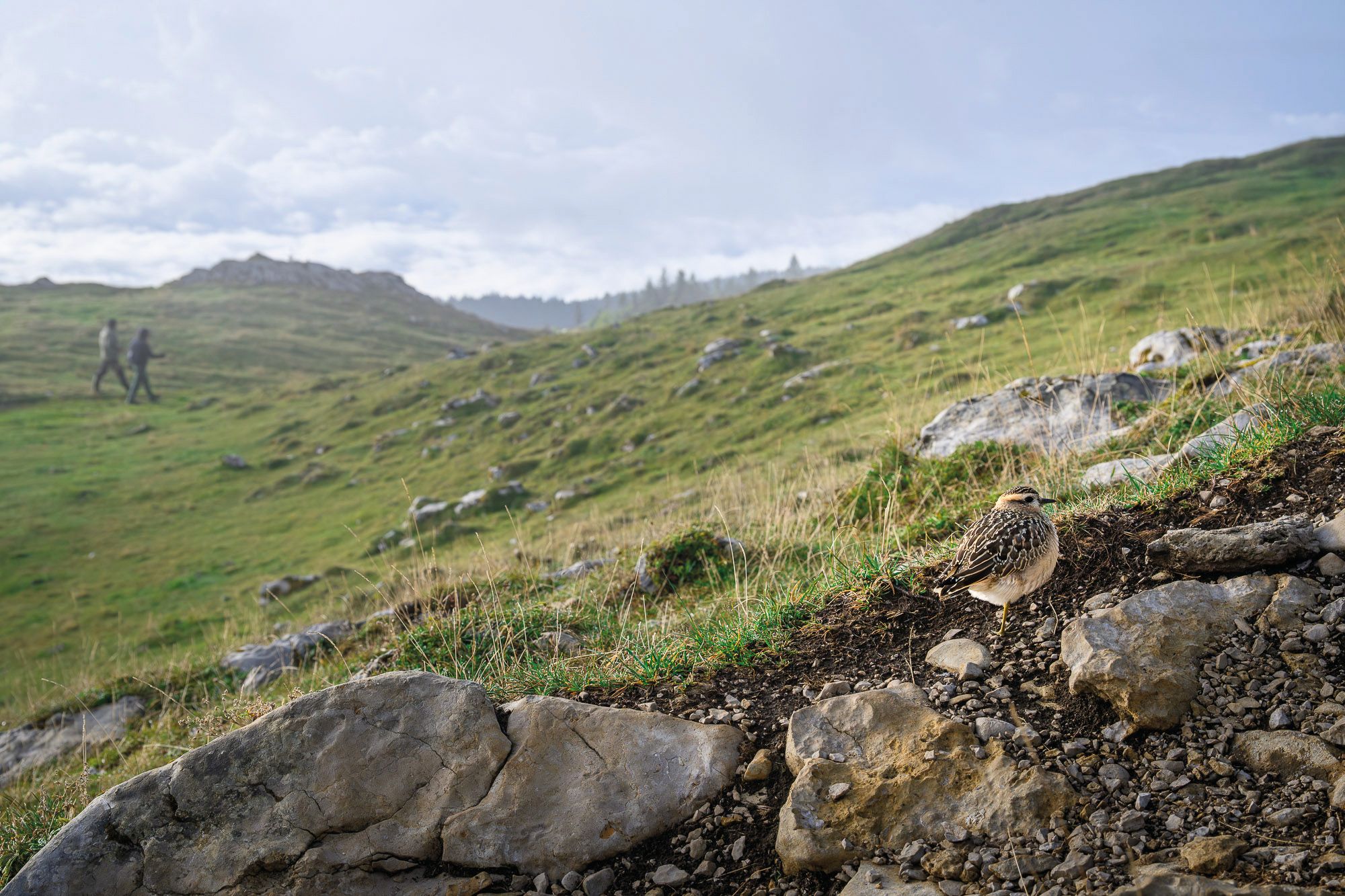 Le pluvier guignard passe la belle saison dans les steppes de Scandinavie. Au début de l’automne, il fait halte dans les Alpes ou le massif du Jura sur la route de l’Afrique du Nord.