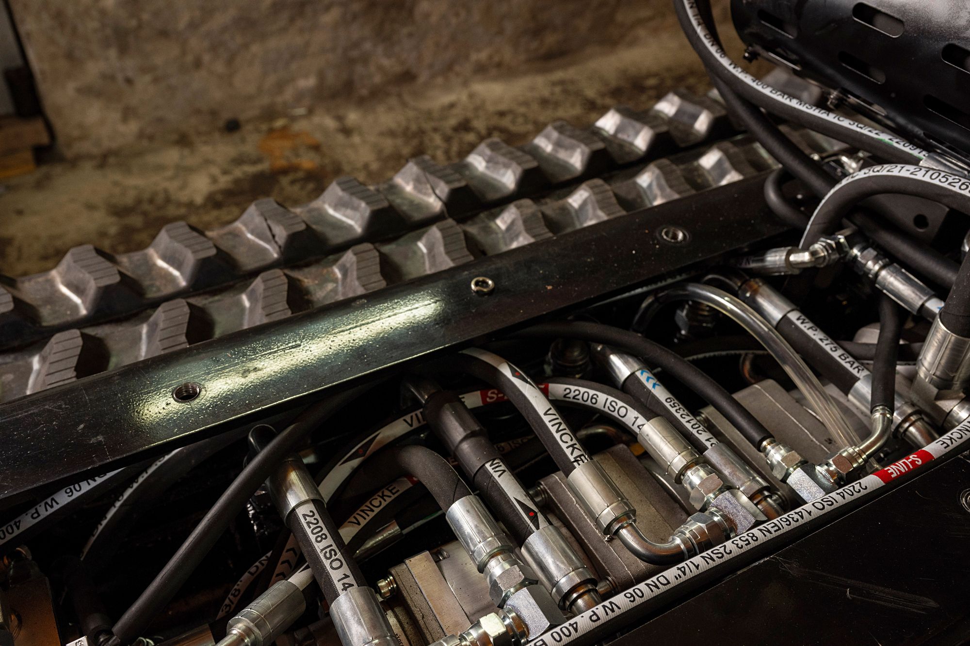Marc Stevanin a mis un soin particulier à rendre sa création compacte. «Le moteur tient entre les chenilles, abaissant le centre de gravité. Et l’absence de porte-à-faux stabilise l’engin tout en facilitant les manœuvres en bout de ligne.»