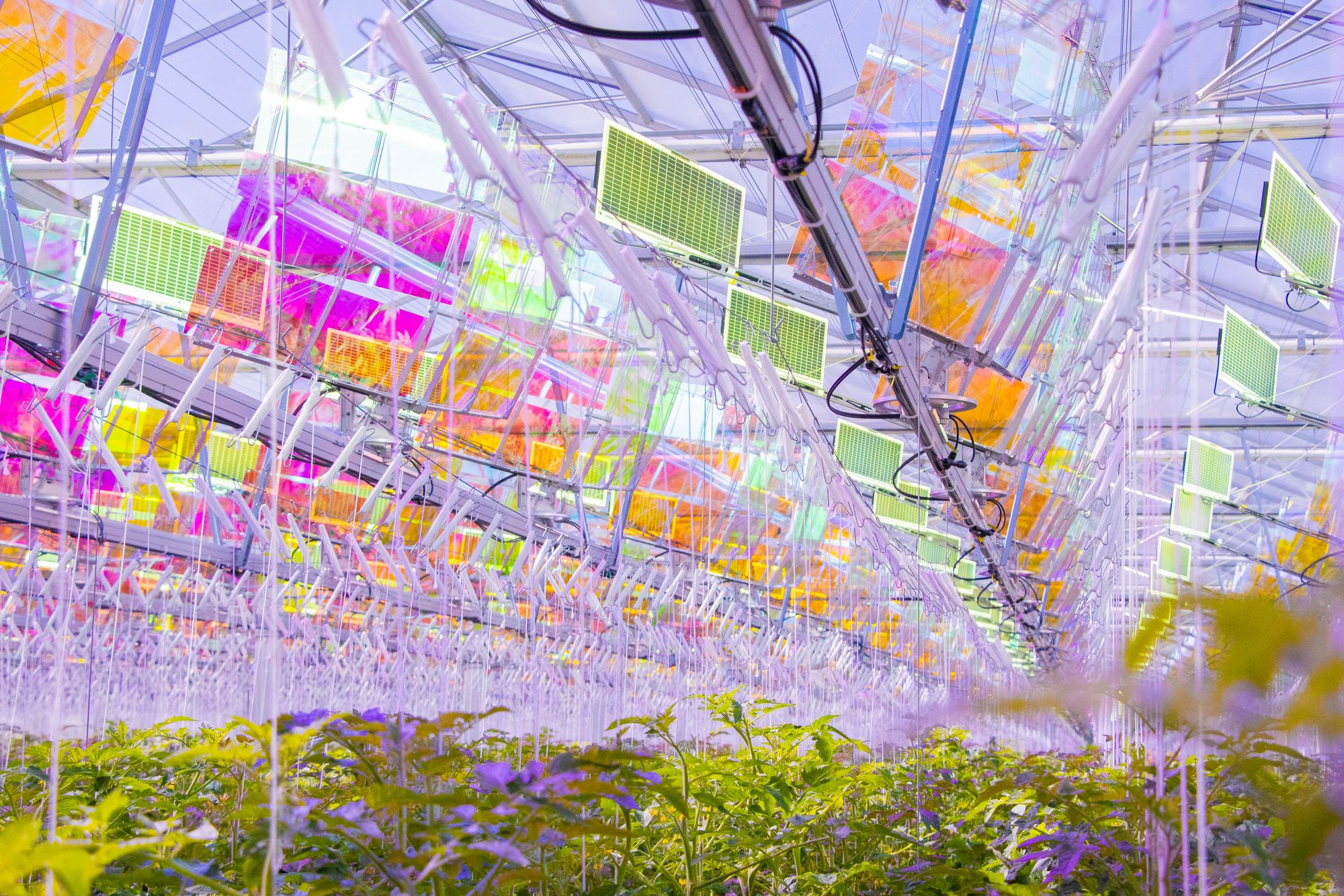 Les rayons du soleil pénètrent dans la serre et sont redirigés par un réflecteur, qui sépare le spectre lumineux en deux groupes. Les fréquences lumineuses nécessaires à la croissance des plantes sont dirigées vers elles, tandis que les autres sont réfléchies et concentrées jusqu’à une cellule solaire qui convertit la lumière en électricité. Le système permet à la fois de produire de l’énergie et de réduire la chaleur excédentaire dans la serre.