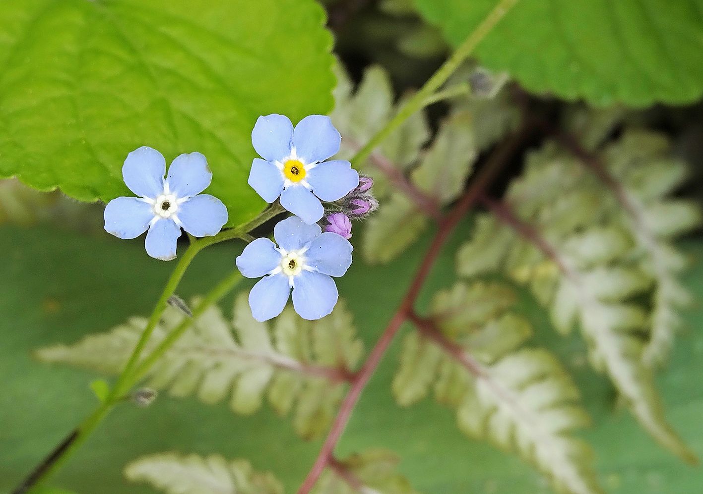 Vergissmeinnicht, ne-m’oubliez-pas, forget-me-not ou nontiscordardimé, le myosotis a droit au même surnom dans de multiples langues, surnom provenant d’une légende germanique: alors qu’un chevalier et sa dame se promenaient au bord d’une rivière, l’homme voulut cueillir une fleur sur la rive, mais le poids de son armure l’entraîna dans l’eau; avant de disparaître, il lança la fleur à son aimée en lui criant: «Vergiss mein nicht.»
