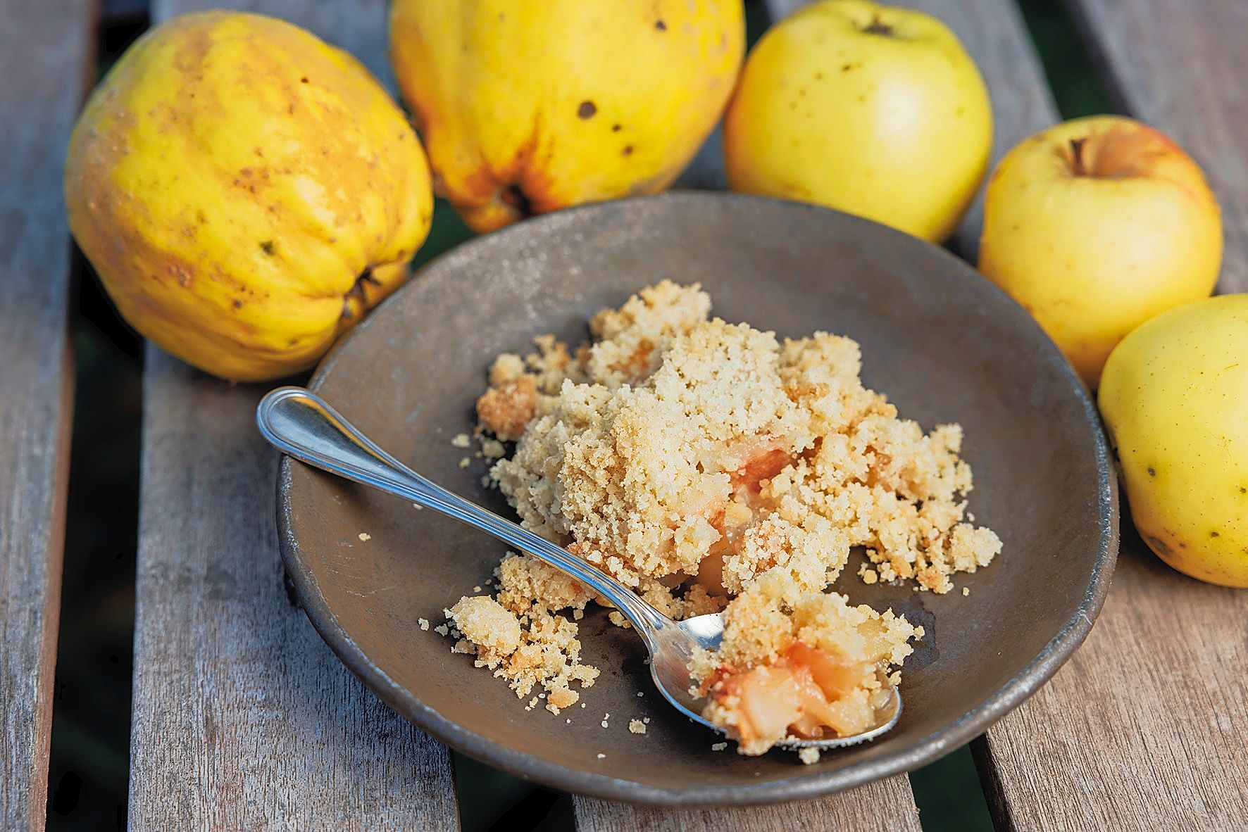 Pour changer de la gelée, essayez les coings en dessert! Leur parfum se marie à merveille avec la douceur fondante de la pomme. Il suffit de les couper en morceaux, de les mettre dans un plat à gratin, puis de recouvrir d’un mélange sablé à base de beurre, farine et sucre. Faites légèrement compoter les fruits et croustiller le crumble une demi-heure à 200°C avant de le servir tiède. C’est un vrai plaisir d’automne réconfortant.
