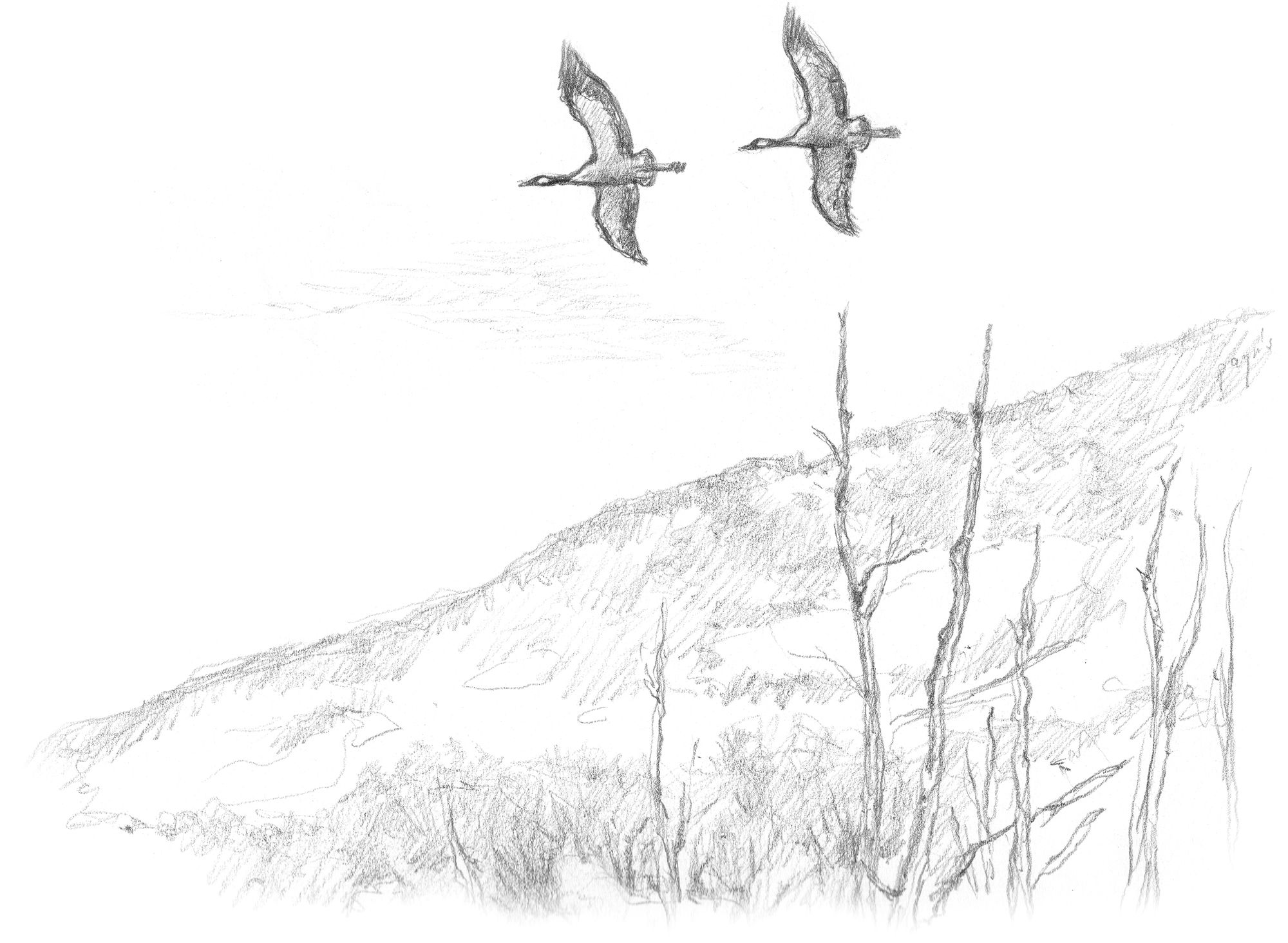 «Krour… kriou… krâ… kriar», les cris sont plus clairs maintenant, mais je ne vois rien et ne peux donc qu’imaginer le groupe de grues cendrées qui vole en migration au-dessus de chez moi. Difficile d’estimer le nombre d’oiseaux, car ils ne s’expriment sans doute pas tous en même temps. Une dizaine, un peu plus?