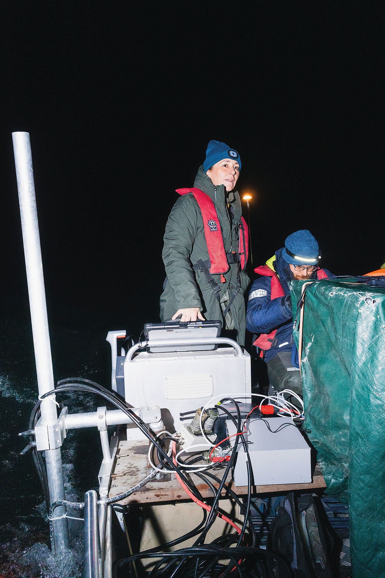 Le Rhône est plongé dans l’obscurité. Lampes frontales vissées sur la tête et bottes imperméables aux pieds, les scientifiques Arthur Blanluet et Eliane Demierre montent à bord de leur bateau. Bientôt, l’embarcation glisse sur l’eau et ses feux de navigation percent la nuit.