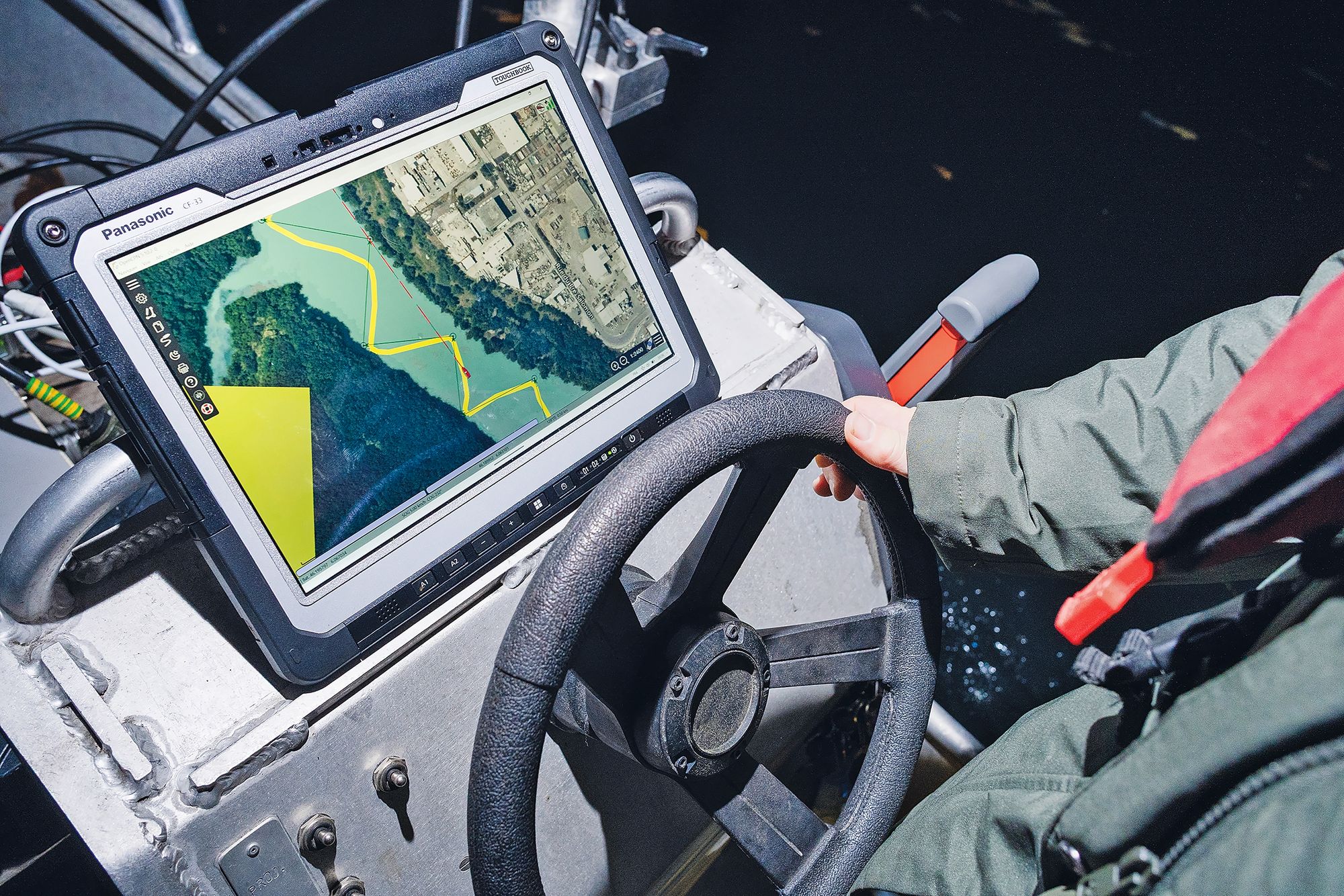 Le bourdonnement du moteur, mêlé au passage des avions de l’aéroport de Genève, trouble la quiétude du fleuve. À la barre, la collaboratrice de la Haute école du paysage, d’ingénierie et d’architecture (HEPIA) de Genève manœuvre avec précaution. «Ici, on avance doucement, il y a très peu de fond.»