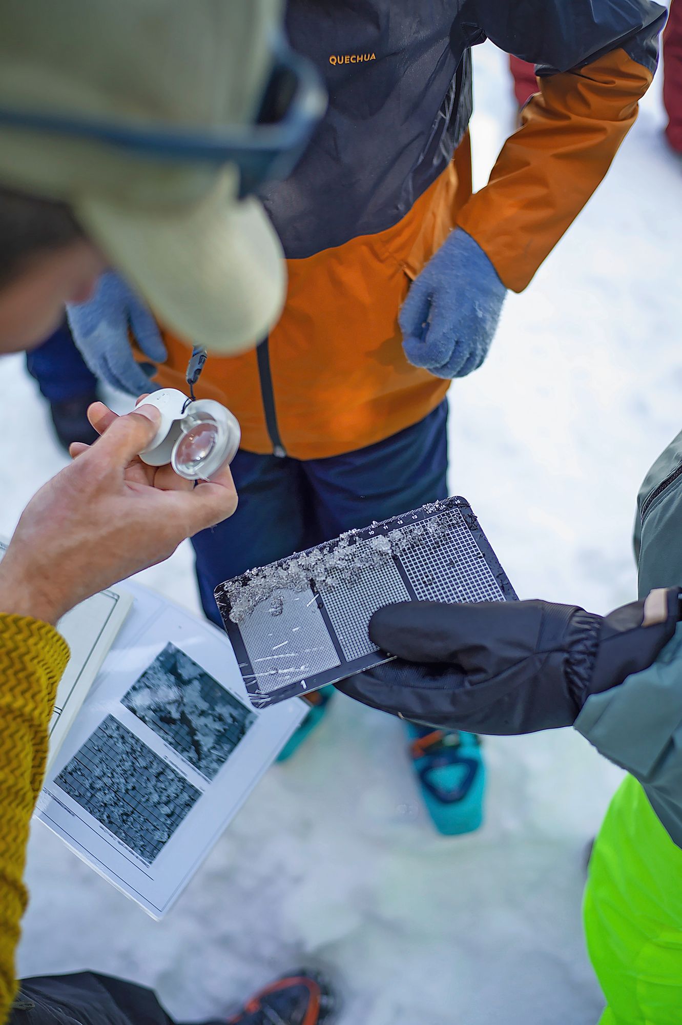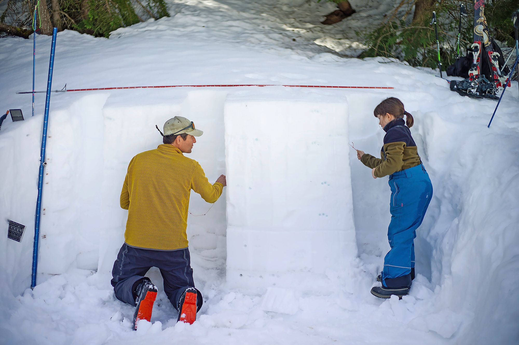 «Qui peut me dire quelle épaisseur de neige il y a sous nos pieds?» Cinq paires de petites mains déplient les sondes, plantent les longues tiges d’aluminium dans le manteau neigeux, scrutent les chiffres… «Un mètre quarante!»