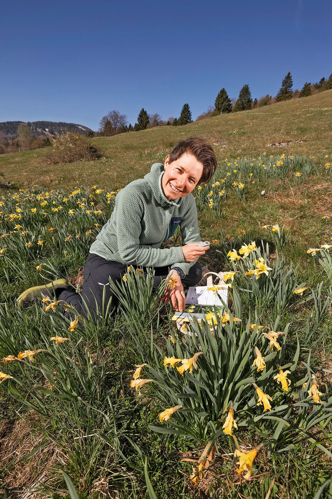 Responsable de projet Nature et paysage du Parc naturel régional Chasseral, Isaline Mercerat invite le public à s'émerveiller devant les jonquilles, sans les cueillir.