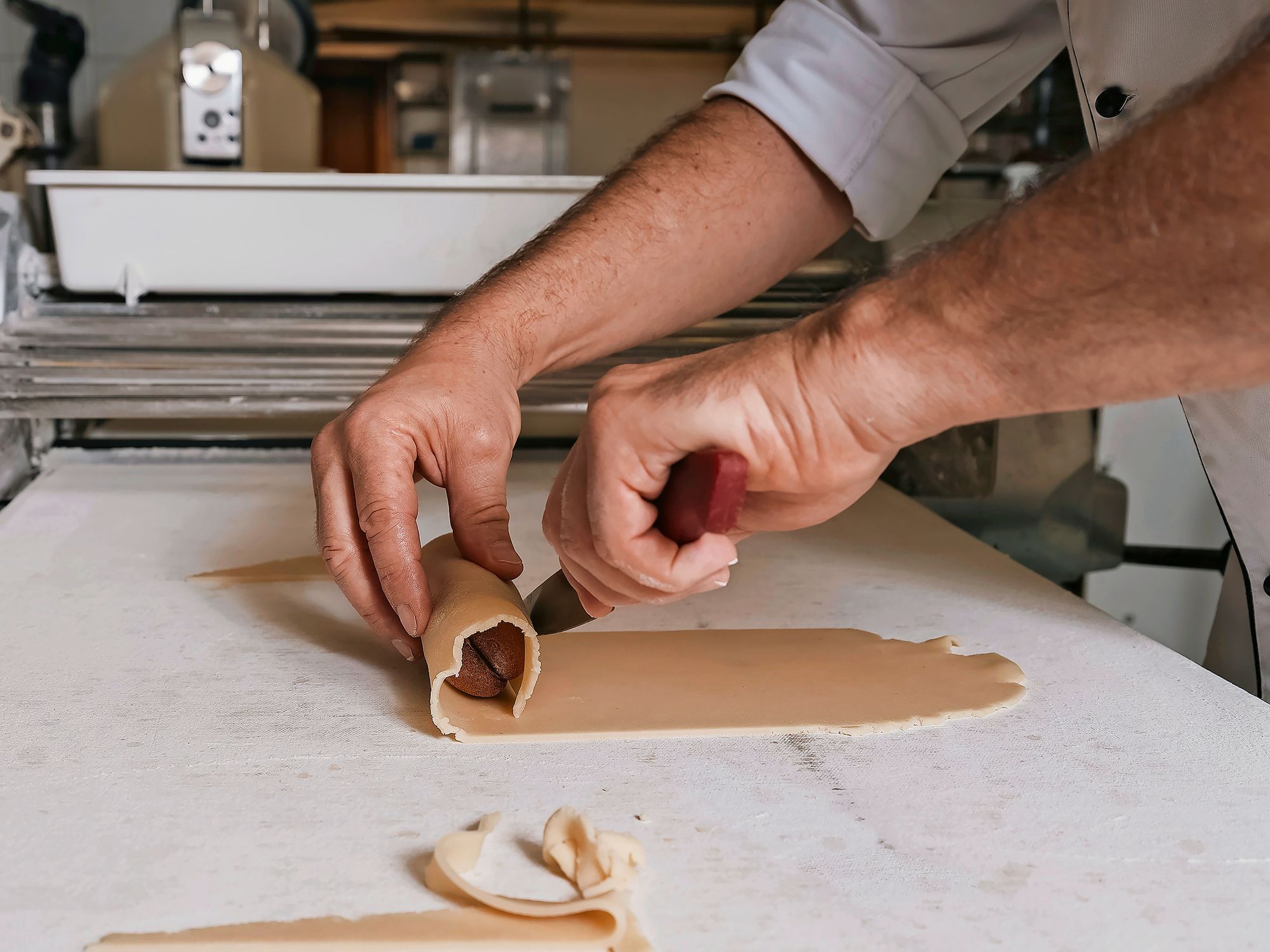 Oui, cette dernière se déguste aussi au dessert, mais si elle ressemble fort à un tubercule tout juste sorti du champ, sa peau brune cache un étonnant délice gourmand. Ce type de trompe-l’œil est devenu rare, mais «à l’époque, cette préparation figurait au programme des examens des apprentis pâtissiers-confiseurs, se souvient Florian Défago, alors qu’il nous accueille dans son laboratoire. La base est ce qu’on appelle un «biscuit à la cuillère», une pèlerine, décrit le Morginois. On y ajoute de la crème pâtissière noisette et on enrobe les pièces de massepain.»