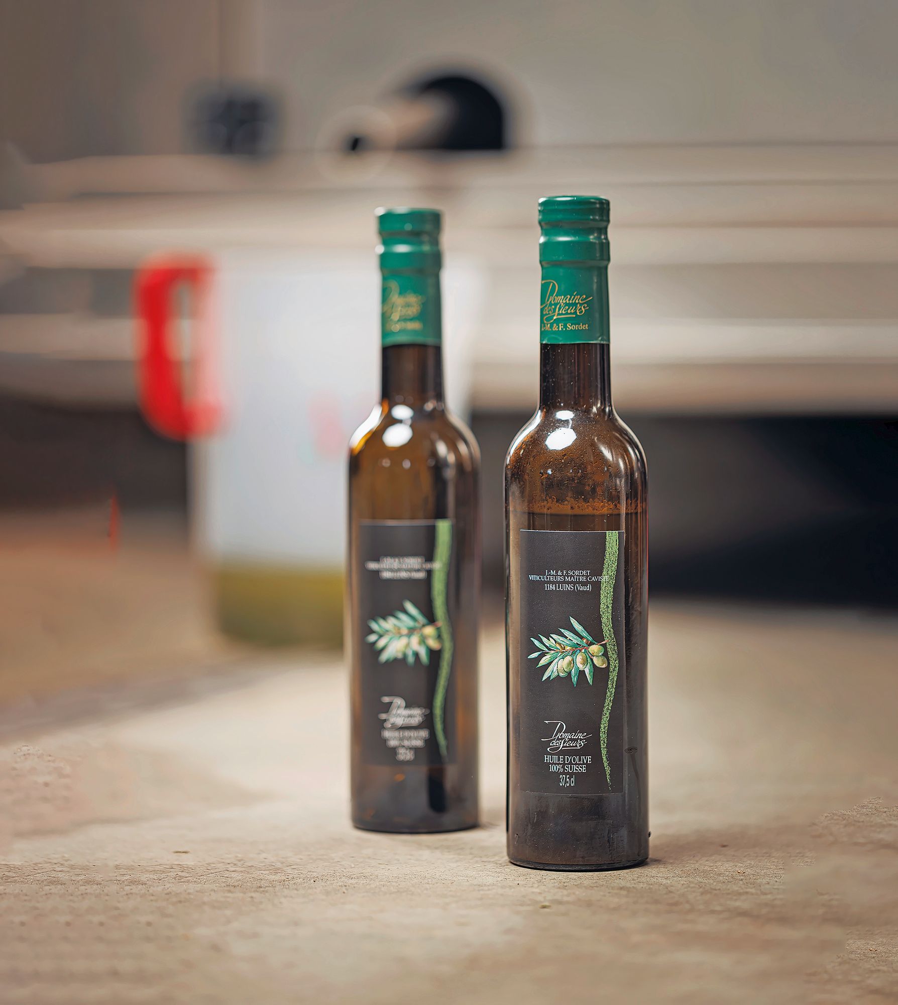 Dans le village vaudois de Luins, les montagnes se dessinent au-dessus d’un décor champêtre, drapé dans un silence que seul le passage fréquent des automobiles interrompt. Un peu à l’écart, à l’intérieur d’un bâtiment viticole, plusieurs silhouettes sont réunies autour d’un pressoir trônant au milieu de cuves en inox, d’où s’écoule lentement un liquide verdâtre aux reflets dorés. L’atmosphère est joyeuse. Aujourd’hui, Frank Siffert, agriculteur et président de l’Association suisse des producteurs d’olives (ASPO) repartira avec sa première bouteille d’huile.