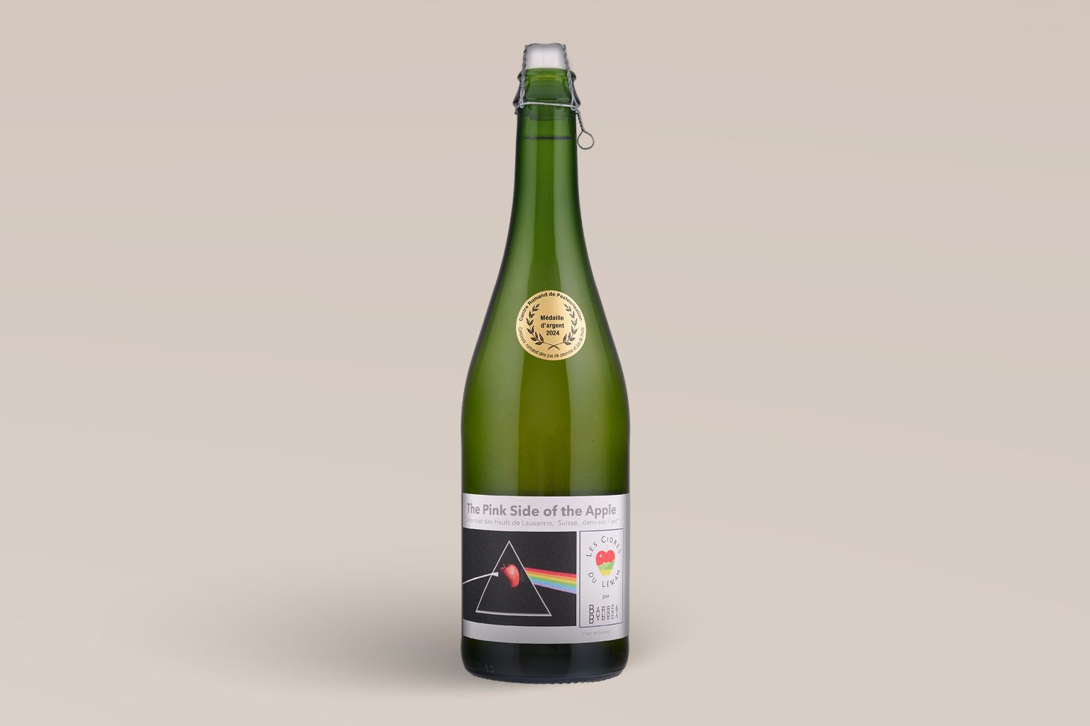 De ce médaillé d’argent 2024 au concours romand des jus de pommes et jus de fruits, la première chose qui frappe, c’est son étiquette, clin d’œil au fameux album des Pink Floyd, The Dark Side of the Moon, sorti en 1973. Mais résumer cette quille à son visuel serait trop réducteur. Ce serait oublier son nez, d’une originalité folle. Les fruits rouges, la fraise, la framboise et la cerise s’en donnent à cœur joie! Ces mêmes arômes, typiques de la pomme kissabel dont est issu ce cidre, impriment une bouche aux irrésistibles flaveurs de bonbons acidulés.