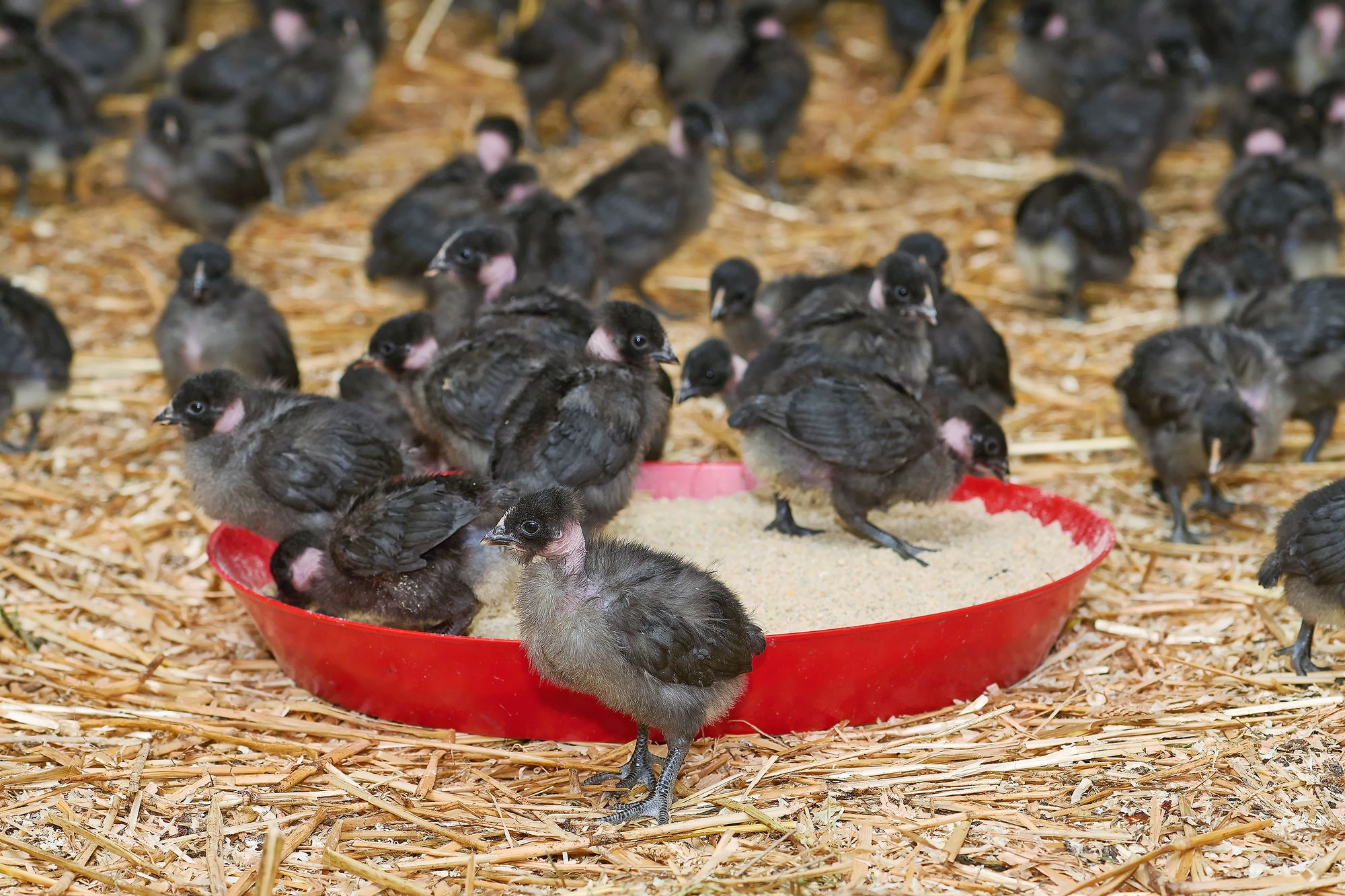 Une alimentation divisée en trois catégories. En premier lieu, les nouveau-nés se régalent d’une farine de céréales enrichie de sels minéraux et d’oligo-éléments. Puis, dès quatre semaines, un composé de tourteau de soja et de céréales prend le relais, avant de céder le pas à un aliment dit «de finition», pauvre en protéines.